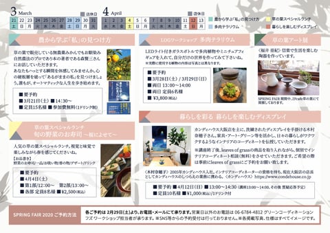 SPRING FAIR 2020 期間中はいろいろな催しをご用意しております。皆様のご来店をスタッフ一同心よりお待ち申し上げます。